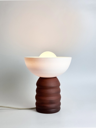 This crafted ceramic table lamp is hand-thrown and kiln-fired, preserving the rustic texture of raw clay and the warmth of handcraft. Soft light diffuses gently through the ceramic base and fabric shade, acting as a calm visual anchor while creating a serene, healing ambiance. It complements diverse home styles, turning every glow into a gentle embrace of life’s quiet quality.